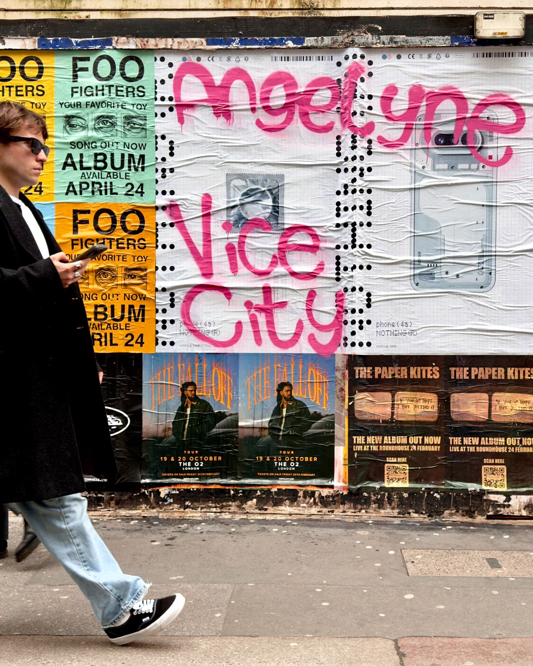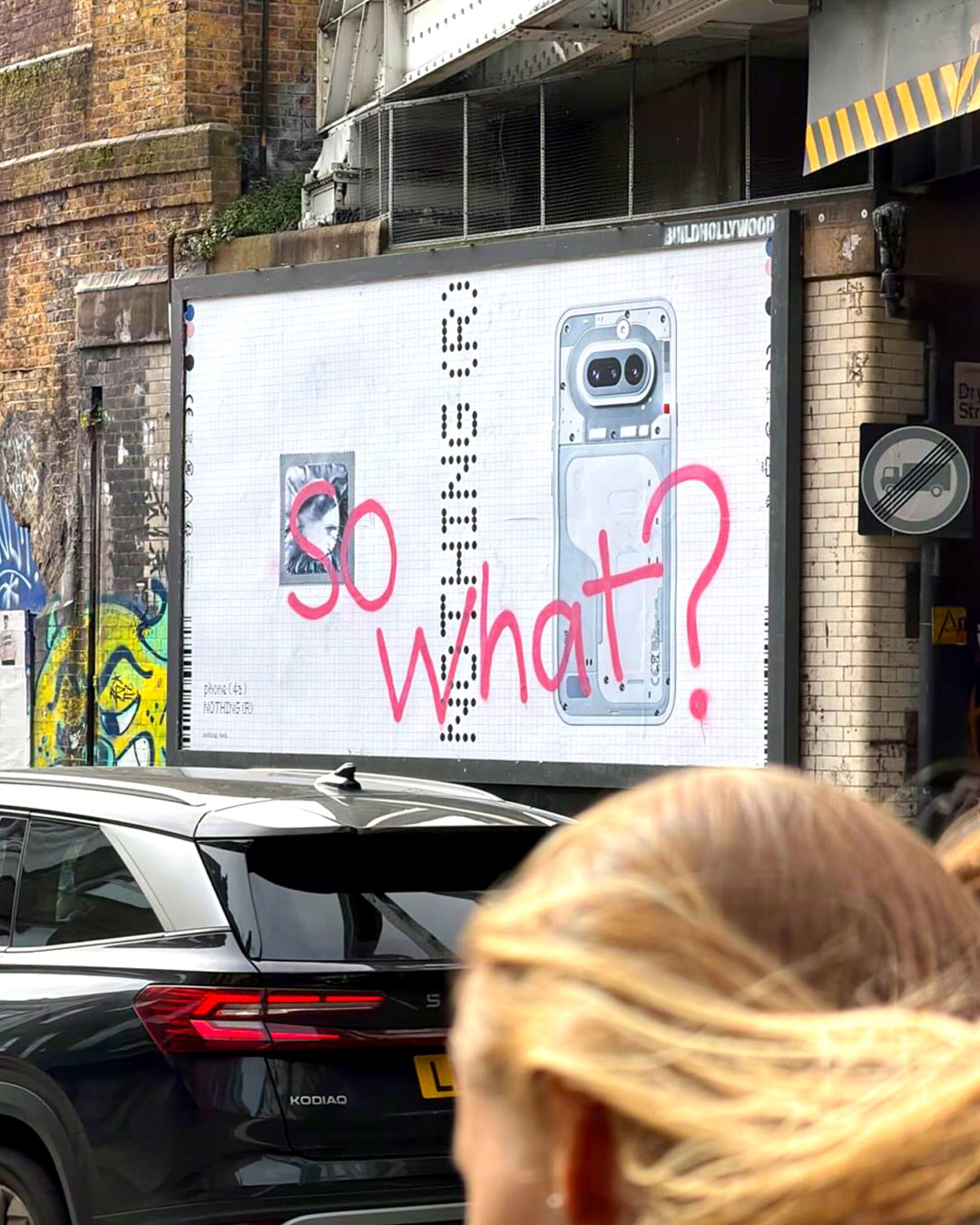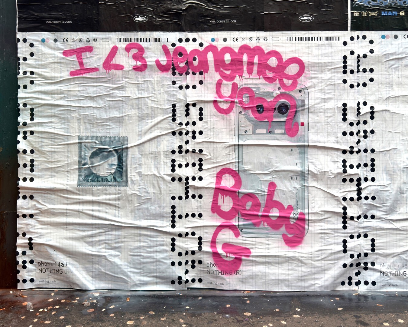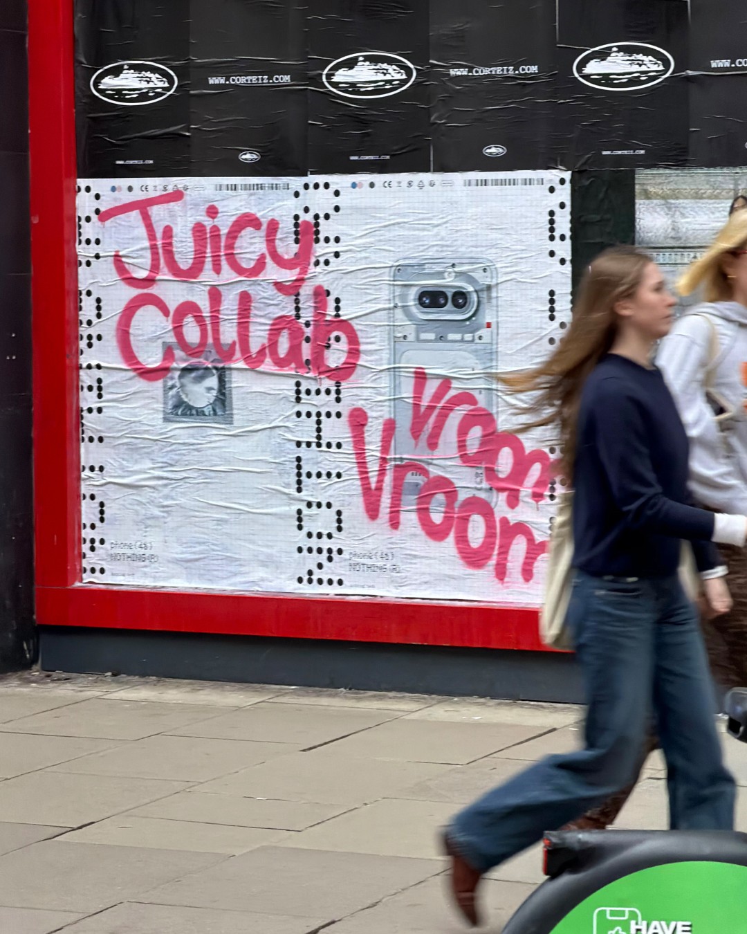 Para além das novidades de produto, a Nothing lançou uma campanha de activação de rua em Londres que não deixa ninguém indiferente. A marca tomou conta de vários pontos do centro da cidade com grafitis disruptivos sobre os seus próprios cartazes, cheios de referências culturais à cor-de-rosa, e fez uma intervenção na montra da Nothing Store no Soho com o mesmo espírito.