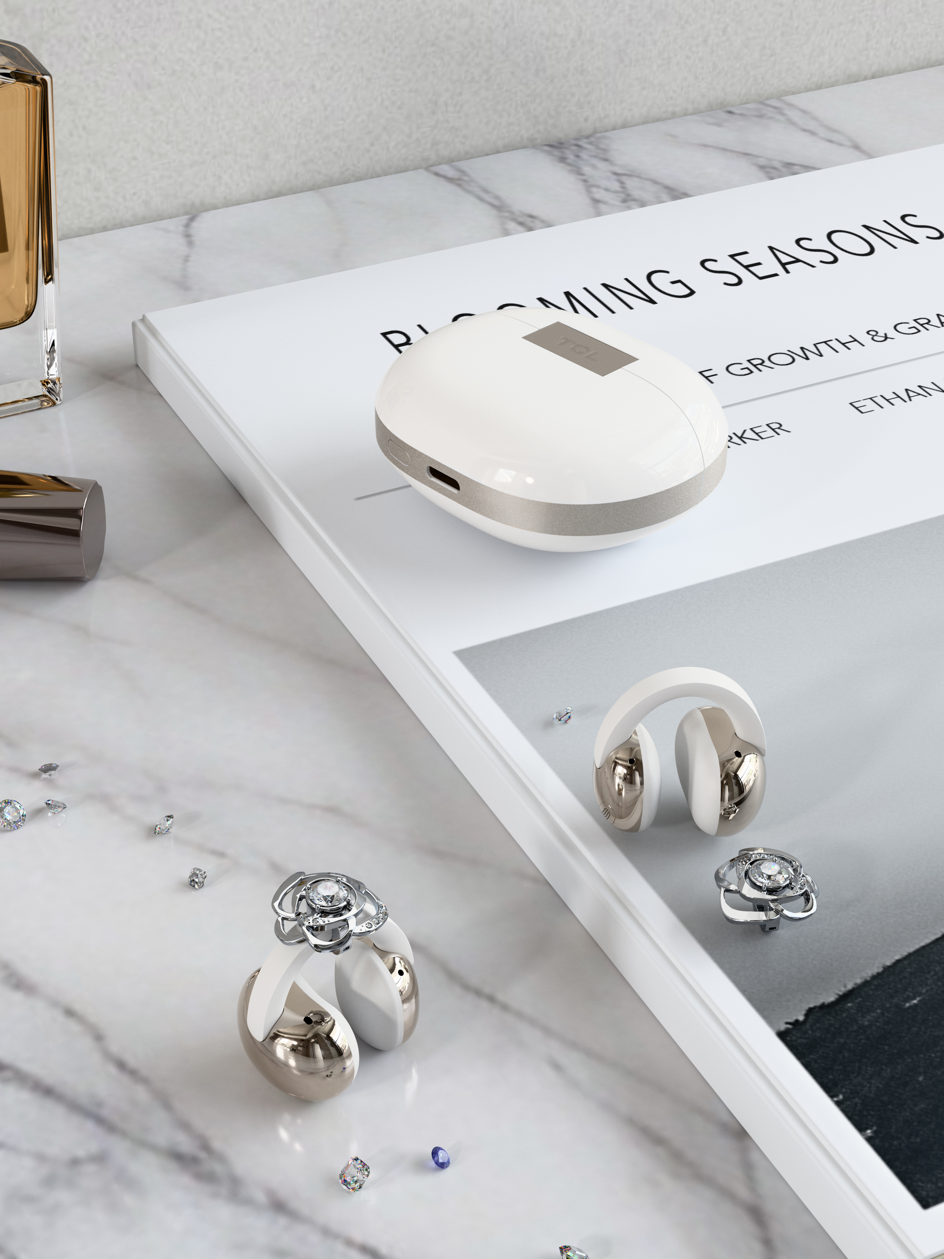 Os auriculares CrystalClip marcam a aposta da TCL no formato aberto, para quem se quer manter atento ao que se passa à sua volta, com um design clip-on que lhe dá um aspecto semelhante a um acessório de moda.