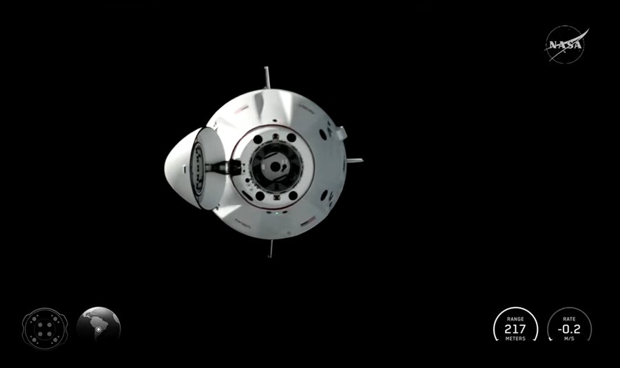 Depois de 34 horas de voo em órbita da Terra para "apanhar" a Estação Espacial Internacional, a cápsula Dragon com a equipa da Crew-12 fez o processo de acoplagem que já parece rotina mas que resulta de uma manobra bem preparada. A escotilha de ligação foi aberta às 17h14 EST, 22h14 GMT.