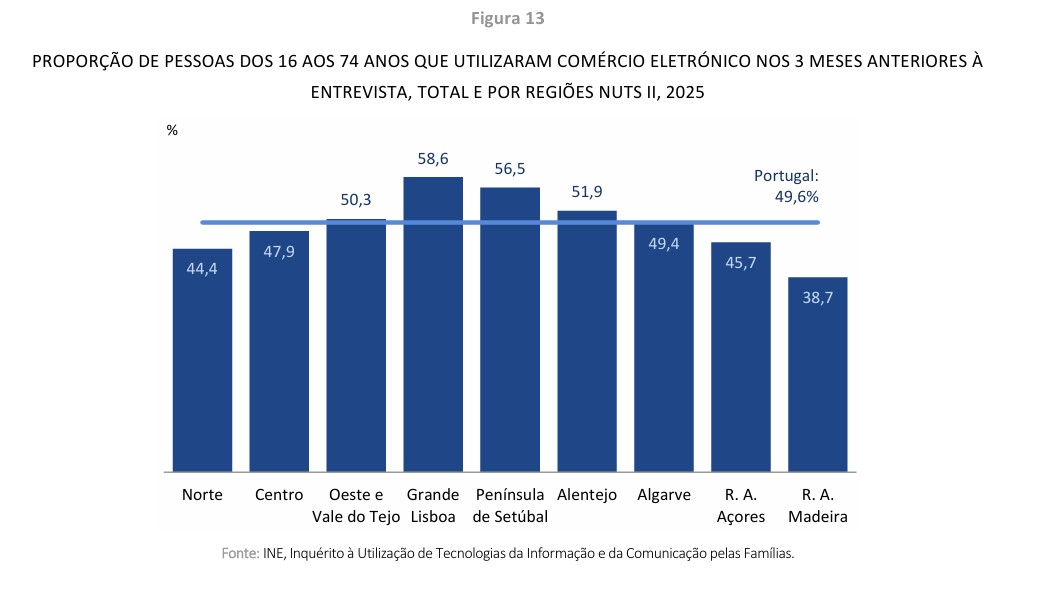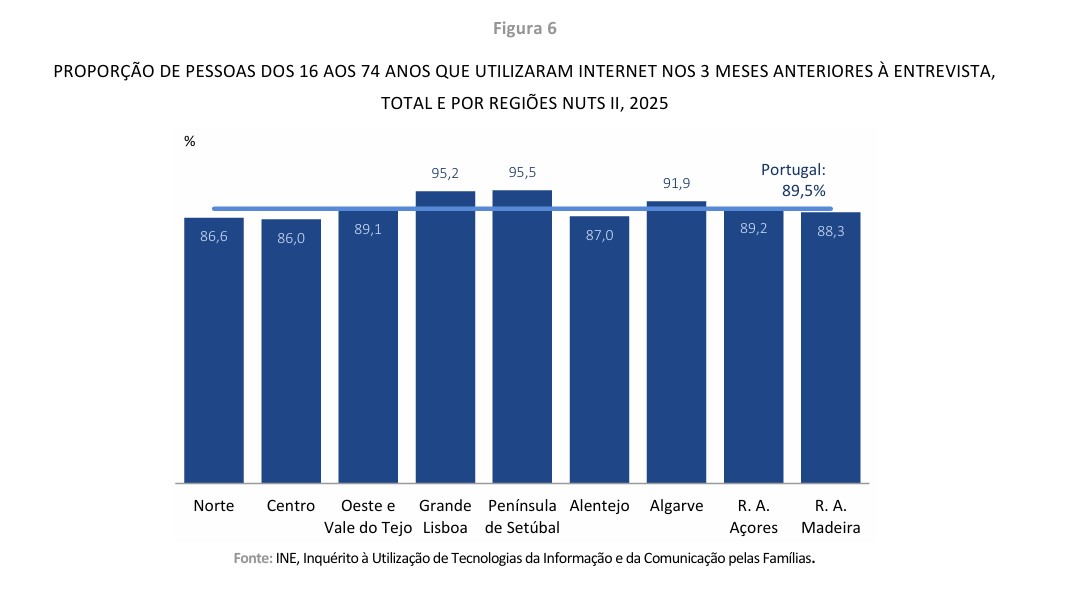 De acordo com o INE, a utilização também é significativamente superior à referência nacional nos escalões etários até aos 44 anos (62,6% para o grupo dos 25 aos 34 anos e de 52,3% para o dos 35 aos 44 anos) e na população empregada até aos 74 anos (43,3%),