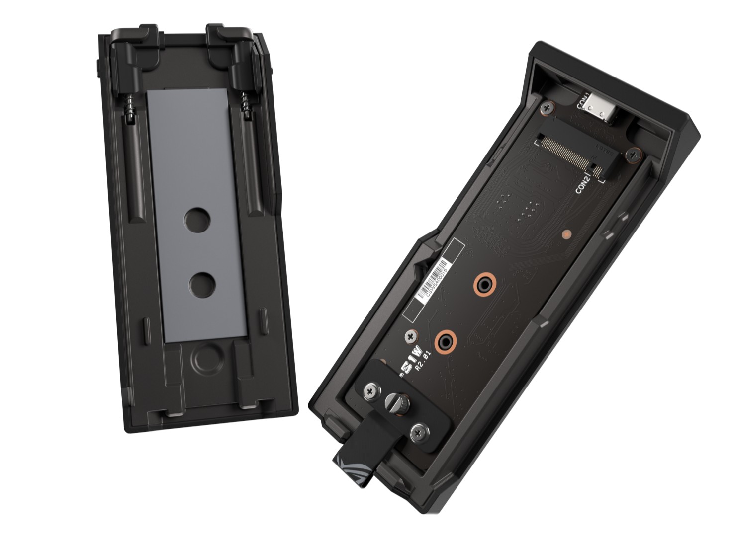 Internamente, uma almofada térmica de alta eficiência dissipa o calor gerado pelo SSD para evitar o estrangulamento térmico (thermal throttling) durante cargas de trabalho intensas. Externamente, o ROG Strix Aiolos é revestido por uma borracha de silicone líquido resistente ao calor. Este material, moldado por injeção, não só protege o hardware contra a entrada de poeiras e manchas, como assegura que o dispositivo se mantém frio ao toque, mesmo após longos períodos de utilização intensiva.