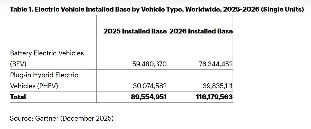 No próximo ano, o número de veículos elétricos em circulação nas ruas de todo o mundo deve aumentar para 116 milhões, com a China a contribuir para o número com a maior base instalada de veículos elétricos do mundo, de acordo com as previsões da Gartner.