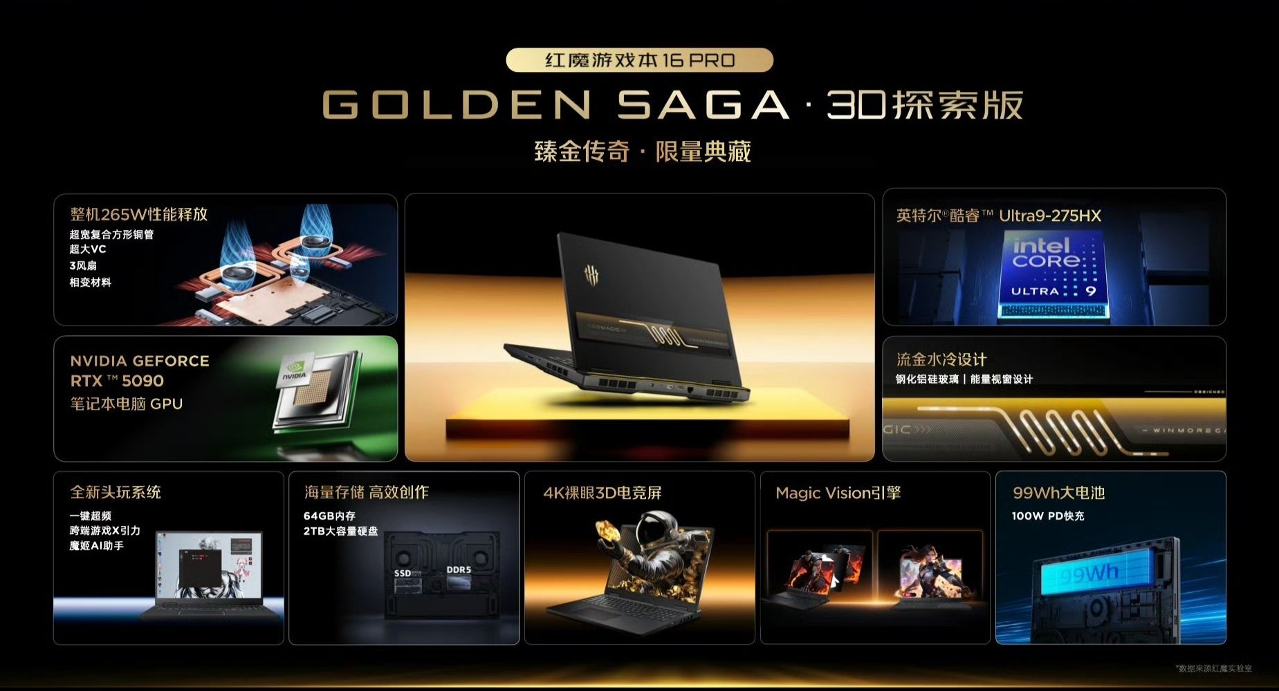 A RedMagic aproveitou também para revelar uma coleção de edições limitadas do RedMagic 11 Pro. Chamada "Golden Saga", a edição combina materiais de luxo, como a tampa traseira em fibra de carbono aeroespacial T1100 com vidro de safira por cima, moldura em aço inoxidável com acabamento espelhado e uma câmara de vapor folheada a ouro. Esta edição está limitada a 2.026 unidades, sendo todas elas numeradas.