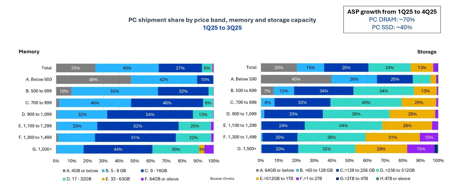“Entre o primeiro e o quarto trimestre de 2025, os custos da memória e do armazenamento dos PCs convencionais aumentaram entre 40% e 70%”, destaca Ben Yeh, analista principal da Omdia.