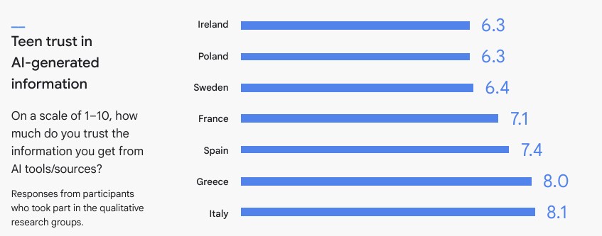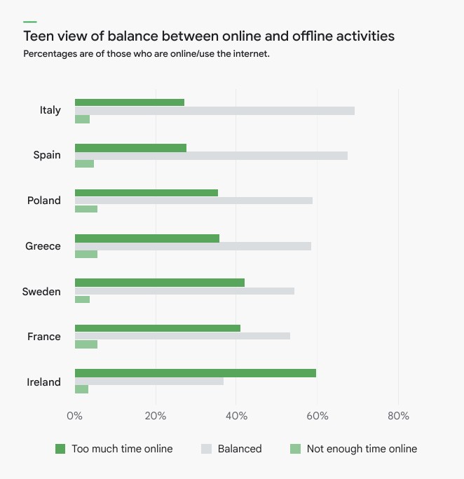 O estudo, realizado pela Livity e encomendado pela Google, inquiriu mais de 7.000 jovens com idades entre os 13 e 18 anos em países como Irlanda, Polónia, Grécia, Espanha, Itália, França e Suécia.