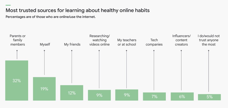32% dos jovens afirmam recorrer aos seus pais e encarregados de educação quando precisam de conselhos sobre hábitos digitais saudáveis. Já 12% dos inquiridos optam pelos conselhos dos amigos e 9% pelas recomendações de professores.
