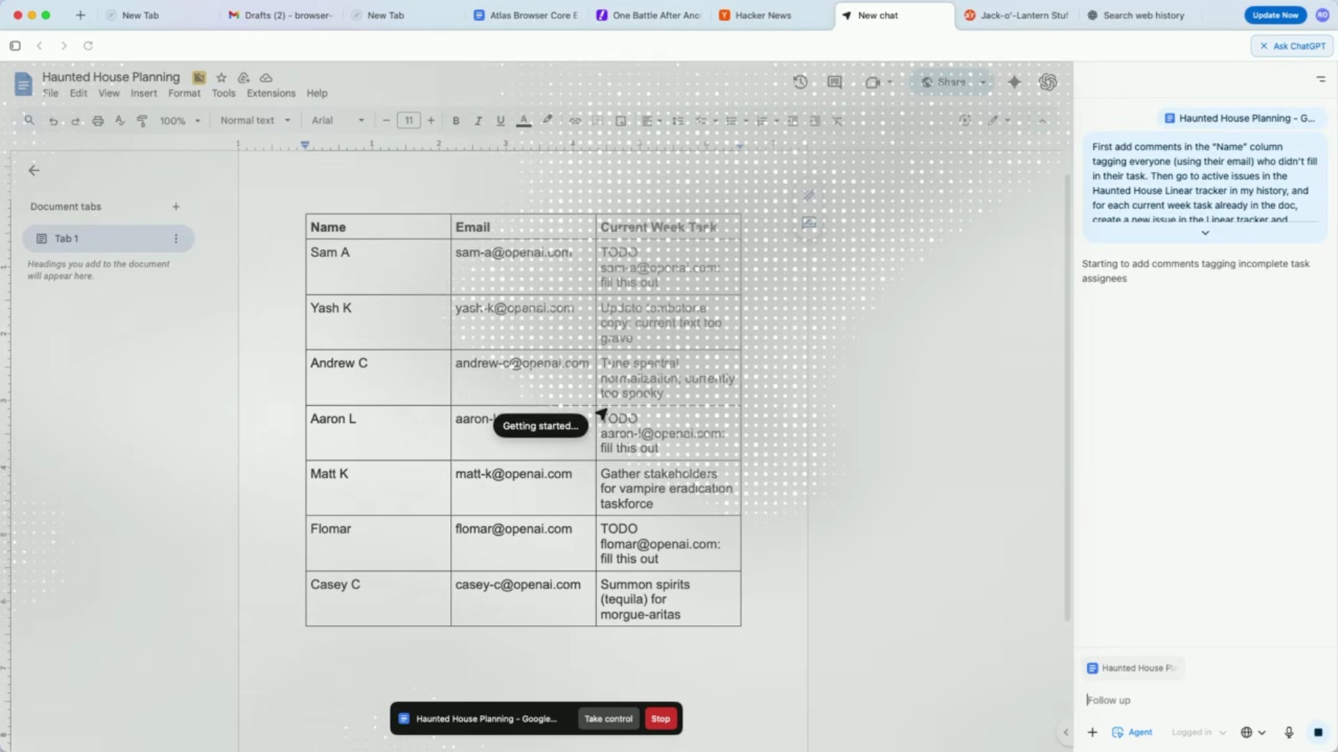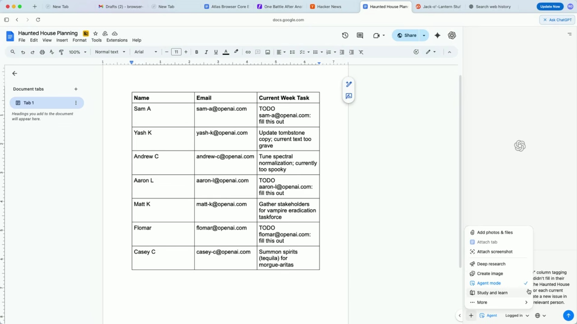 Já o Agent Mode do ChatGPT Altas foi criado para dar conta de tarefas que os utilizadores não têm tempo para fazer ou, então, para aqueles momentos em que querem aprender a realizar uma tarefa num software que nunca usaram. Tendo em conta a tarefa a realizar, este modo dá ao navegador um cursor próprio e acesso a toda a informação que necessita, trabalhando em segundo plano enquanto os utilizadores se dedicam a outras coisas.