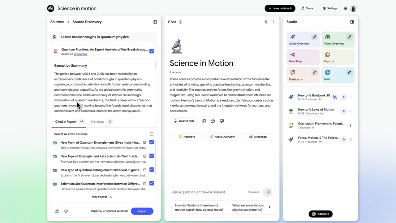 A Google indica que as novas atualizações deverão estar disponíveis para todos os utilizadores no prazo de uma semana. Recorde-se que desde o seu lançamento, no final de 2023, a Google tem expandido o NotebookLM com funcionalidades adicionais. No início deste ano, introduziu a função de Video Overviews para permitir aos utilizadores transformar conteúdo multimédia denso, como notas, PDFs e imagens, em apresentações visuais, juntamente com a função de Audio Overviews, que gera um podcast de IA baseado em documentos partilhados com o NotebookLM.