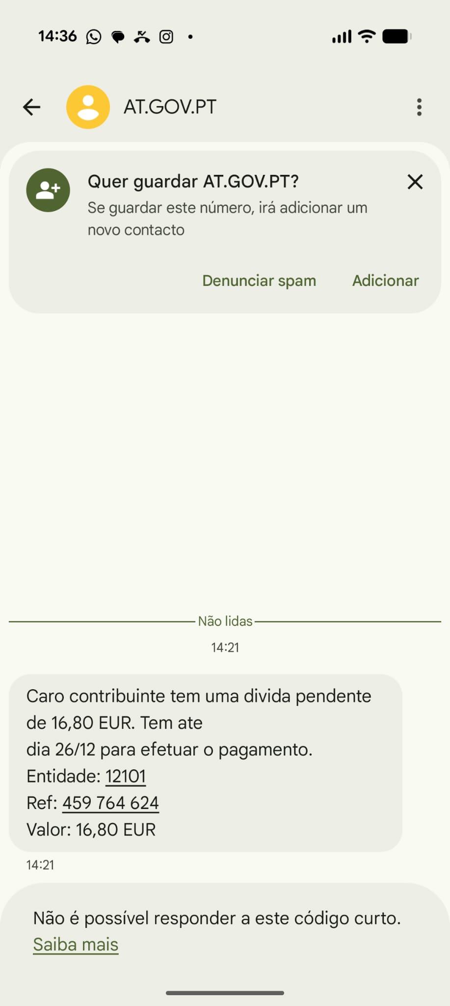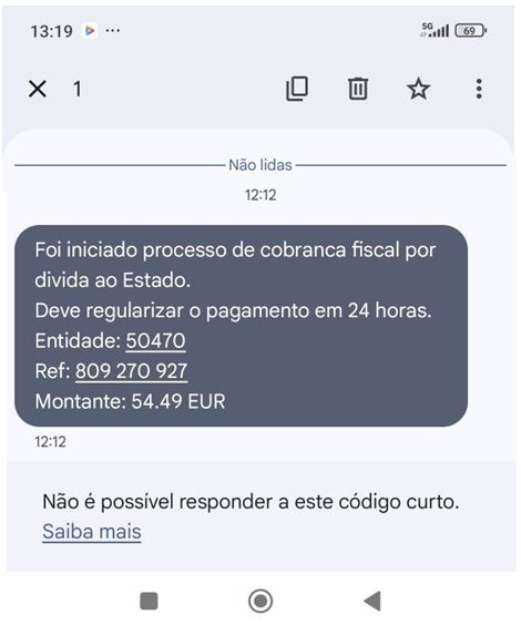 Os valores das dívidas nas novas mensagens são baixos e os SMS aparecem com indicativo como se tivessem origem na AT.GOV.PT, indicando um prazo curto para cumprir a obrigação. E já trazem códigos para pagamento por Multibanco, tornando mais fácil a quem está distraído cair no esquema, e pagar, sobretudo em tempo de férias ou dias atarefados.