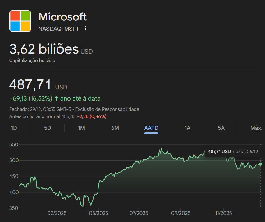 A breve estadia da tecnológica liderada por Satya no clube dos 4 biliões de dólares aconteceu após uma apresentação de resultados da empresa que animou o mercado e depois das ações da tecnológica terem valorizado mais de 16% desde o início do ano.
