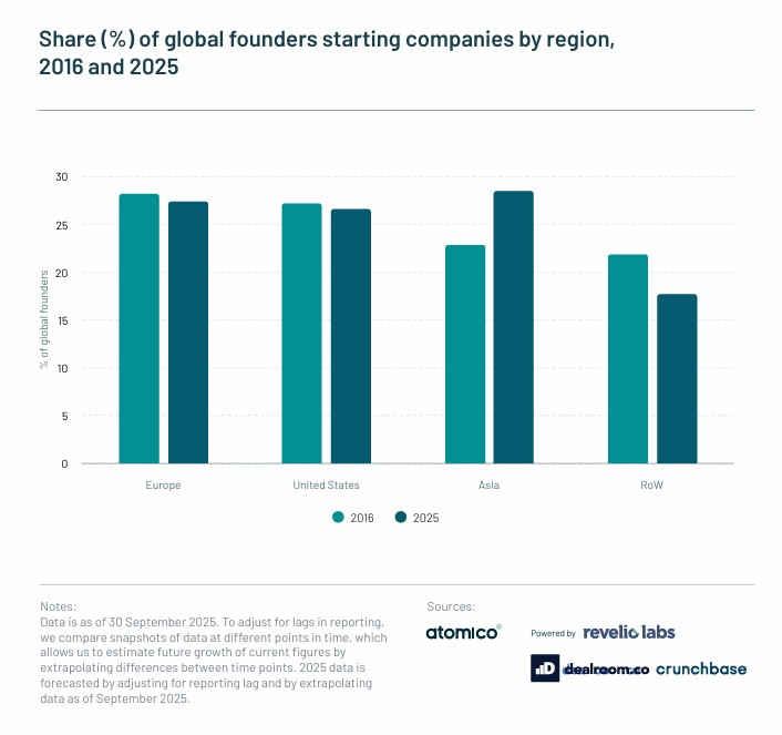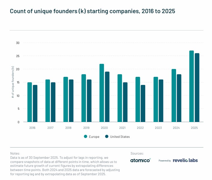 Nos últimos anos, o número de investidores ativos na Europa quase duplicou, passando de 1.350 em 2016 para 2.850. Os especialistas destacam que os fundadores europeus estão a construir empresas a uma velocidade e ambição sem precedentes, com 28 empresas a ultrapassarem a marca de avaliação de mil milhões de dólares este ano, elevando o número total de unicórnios para mais de 400.