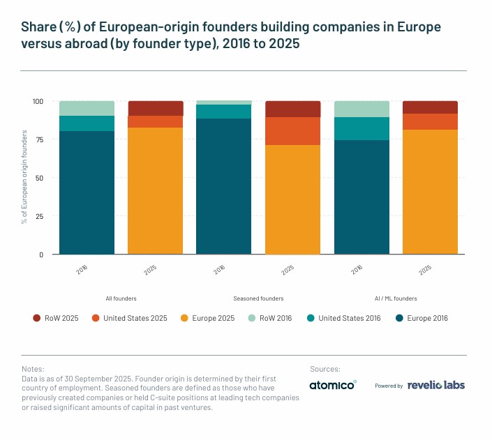 No entanto, cerca de 18% das empresas tecnológicas em fase inicial fundadas na Europa estão sediadas fora das fronteiras do continente, num valor que sobe para cerca de 30% na Série C e mais além, apontam os dados.