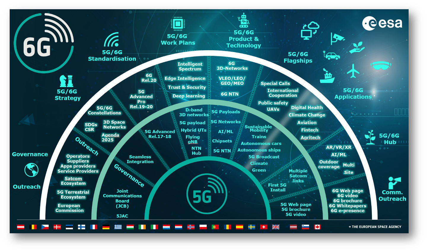 A utilização da tecnologia 5G e 6G no espaço, em satélites orbitais, faz parte dos projetos em desenvolvimento pela Agência Espacial Europeia que já traçou um calendário para várias iniciativas, mas está também a ser olhada pelas fabricantes de telecomunicações como uma evolução que permitirá a ligação dos smartphones às redes de satélites.