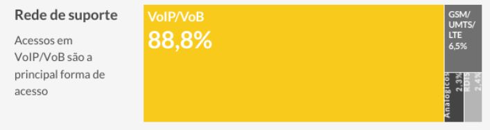Os dados mais recentes da Anacom mostram ainda que a esmagadora maioria dos acessos fixos são suportados em redes de nova geração, quer fibra, quer redes de cabo e redes móveis em local fixo. Estas tecnologias representavam 95,3% dos acessos telefónicos e aumentaram o seu peso em 1,5 pontos percentuais. Já o número de acessos analógicos caiu 32,4% e representava no final do ano apenas 2,3% dos acessos.