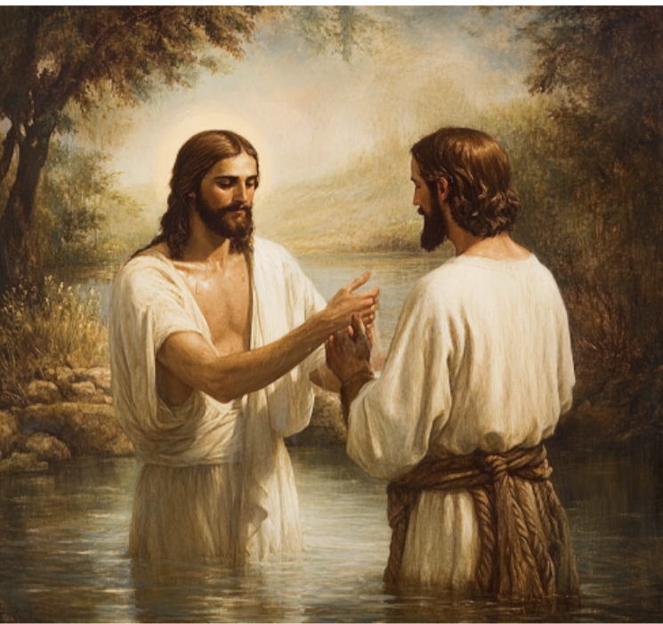 Este ano, por ocasião de uma conferência, desafiei o Midjourney. Pedi-lhe que representasse um dos episódios mais icónicos do Novo Testamento: o batismo de Jesus Cristo no rio Jordão, pelas mãos de João Batista. O resultado? Uma imagem de uma notável qualidade estética. Mas, sejamos honestos: o mérito não foi meu. Infelizmente, o meu talento para as artes visuais sempre foi, para ser simpático, modesto. Limitei-me a escrever o seguinte prompt: